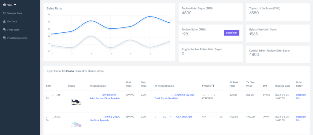 Sistem, firmanın ürün kodlarını ve stoklarını baz alarak; Trendyol, Hepsiburada, N11, Amazon gibi platformlarda aynı ürünü satan rakiplerin fiyatlarını düzenli aralıklarla çekmekte ve karşılaştırmaktadır. Bu sayede firma, ürünlerinin piyasadaki konumunu anlık olarak izleyip, fiyat stratejilerini hızlı şekilde güncelleyebilmektedir.